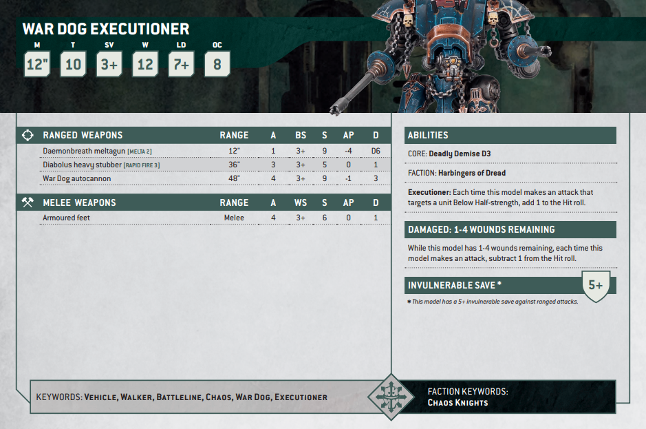 Let us pour one out for the work horse of every competitive Chaos Knight and even many Imperial Knight armies. The War Dog Executioner.